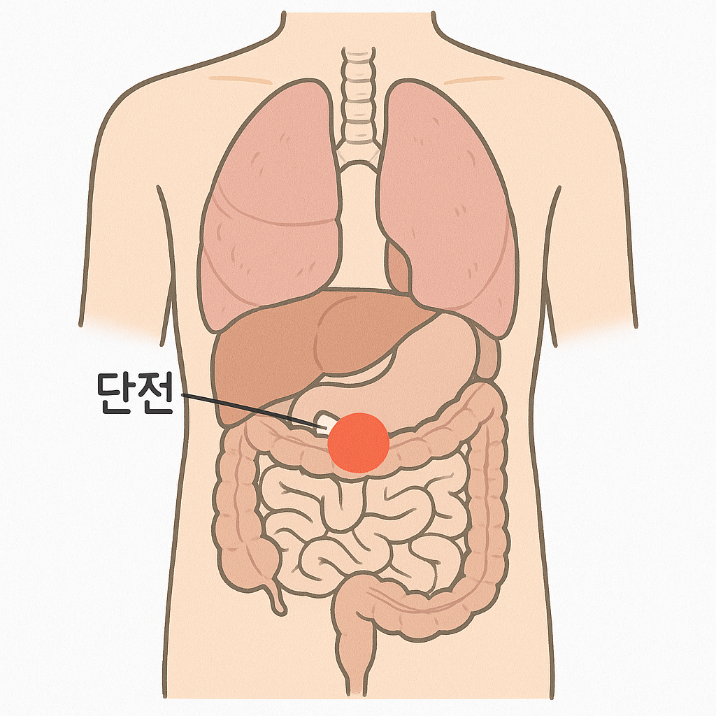 단전은 전통적으로 기(氣)의 중심, 에너지의 저장소로 불리며, 현대적으로는 자율신경 안정과 복부 근육 강화에 도움이 된다고 알려져 있습니다.