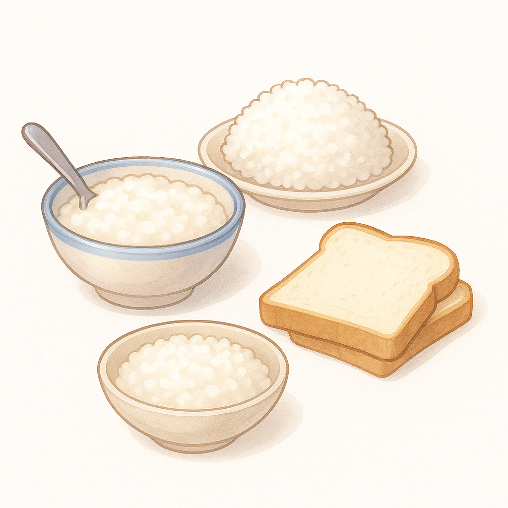 ✔ 전분질 음식(흰죽·밥·식빵)
