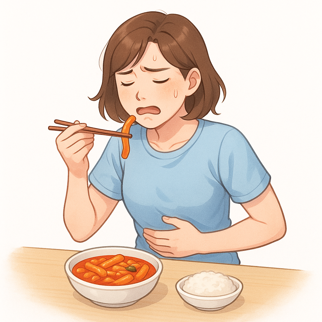 매운 떡볶이, 불닭볶음면, 매운 라면처럼 자극적인 음식을 먹고 나면