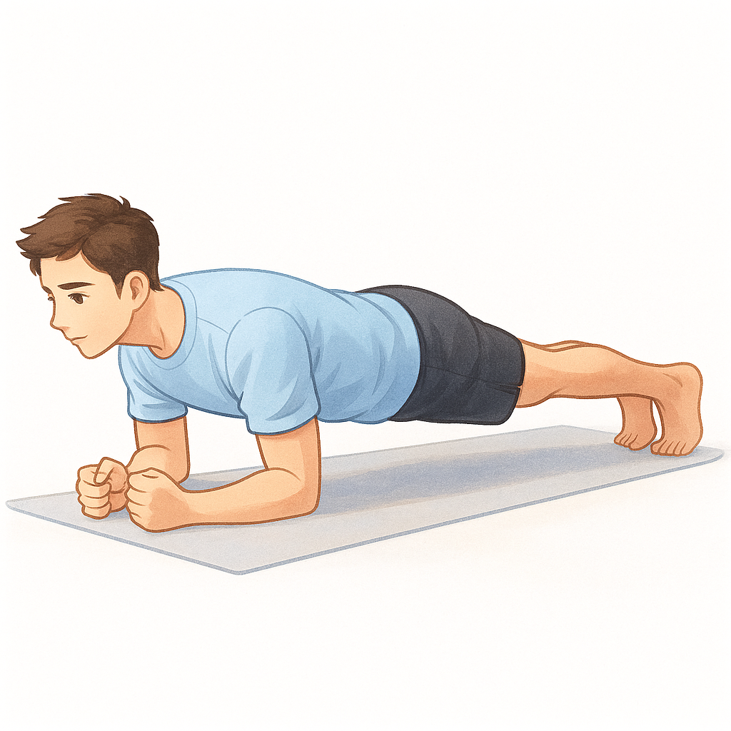 - 플랭크 20~30초 × 3