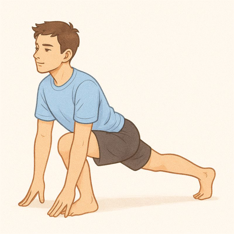 - 한쪽 다리를 뻗고 상체를 앞으로 숙여 허벅지 뒤쪽 늘리기