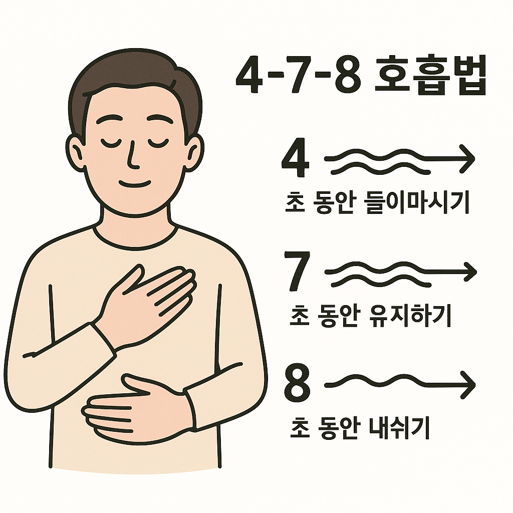 - 호흡법 이름: 4-7-8 호흡법 (혹은 복식호흡)