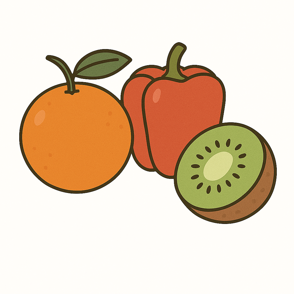| 콜라겐 합성 보조 | 귤, 파프리카, 키위 | 비타민C로 피부탄력 유지 |