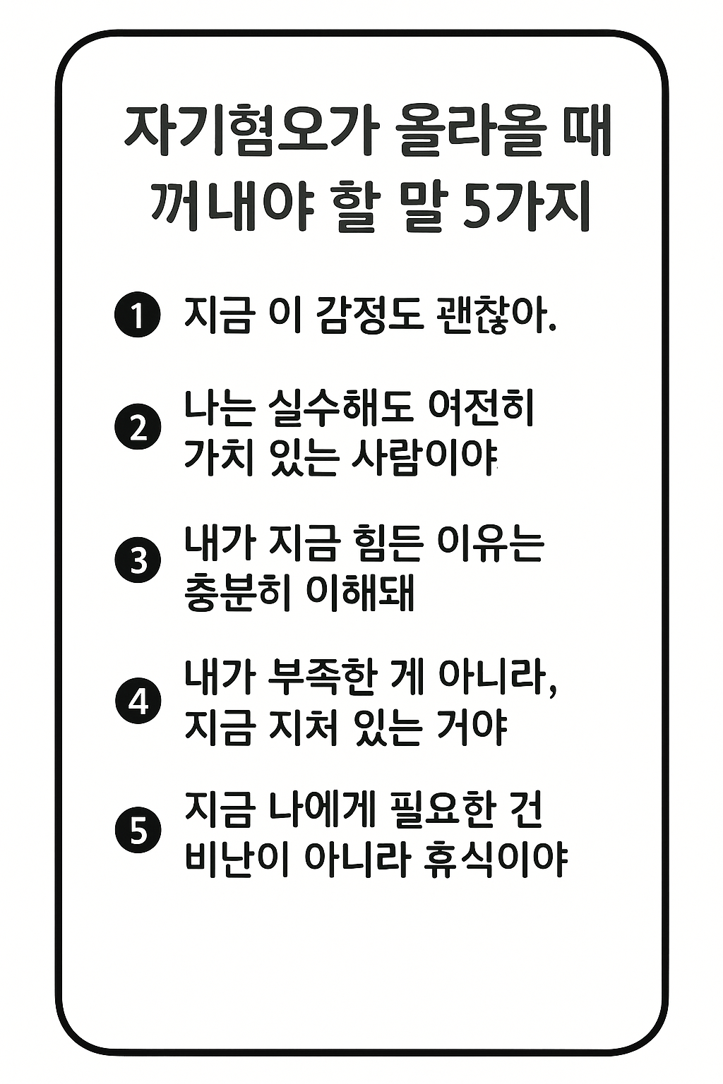 5️⃣ “지금 나에게 필요한 건 비난이 아니라 휴식이야.”