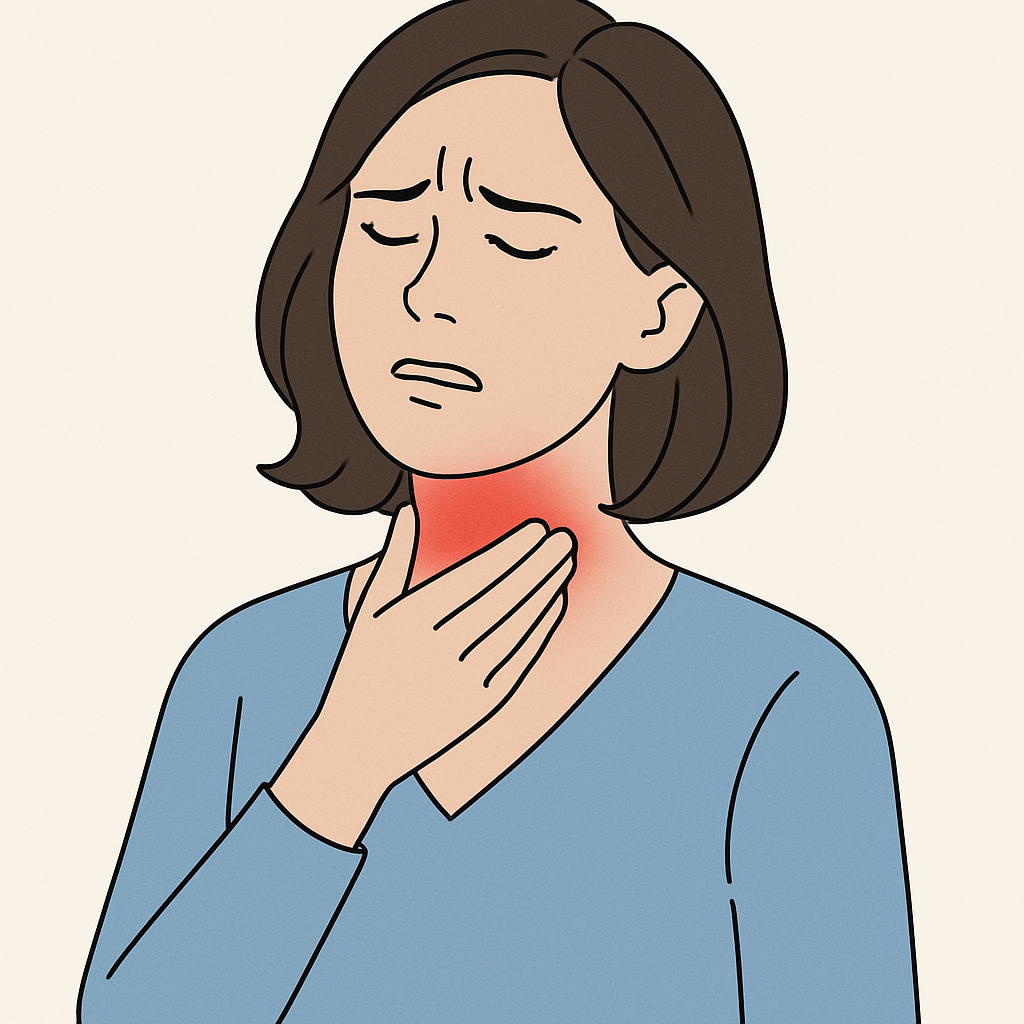 → 역류성 식도염이 인후염·후두염으로 번진 경우일 수 있으므로 신경과·이비인후과 진료를 권장합니다.