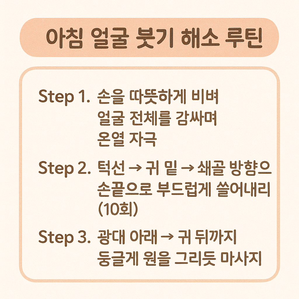 🌅 1. 아침 얼굴 붓기 해소 루틴 (2분)