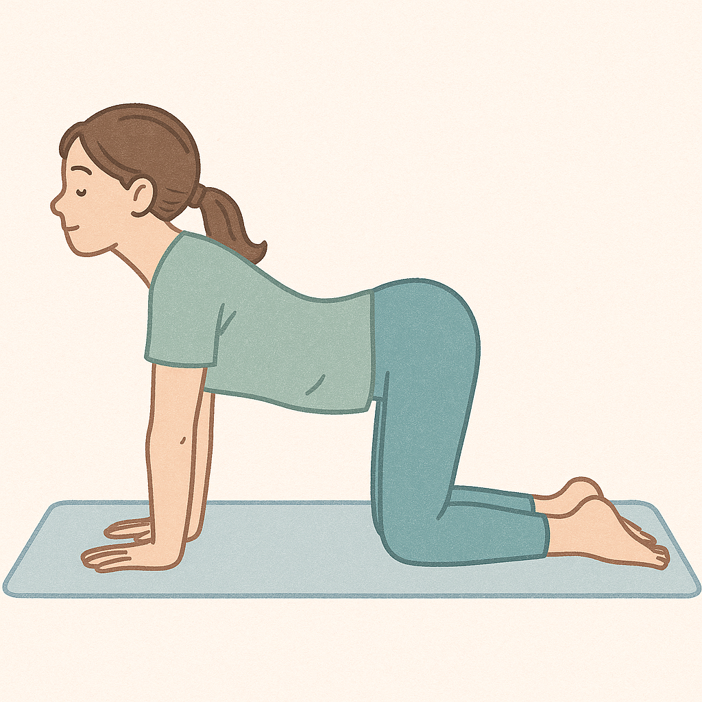 - 방법: 네발기기 자세에서 등을 천천히 둥글게(고양이) → 아래로(소) 움직이기.