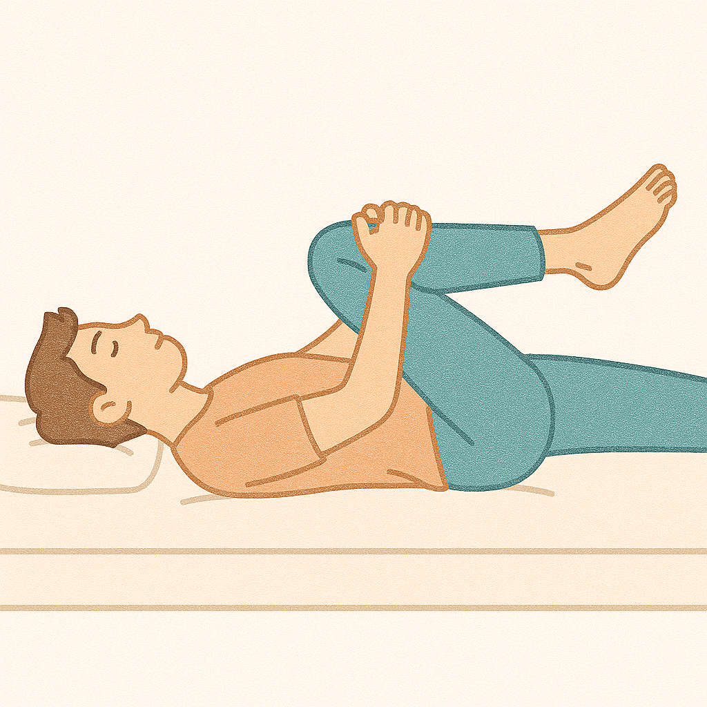 - 방법: 누워서 한쪽 무릎을 천천히 가슴 쪽으로 끌어올리세요.